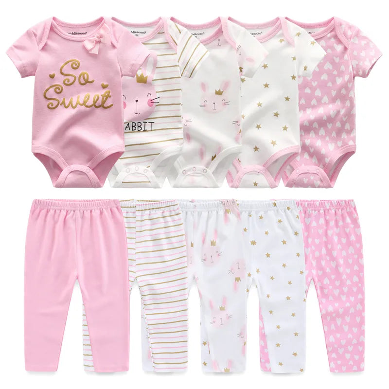 - Newborn Baby Clothing 10-piece Set: 5 baby bodysuits + 5 pairs of baby pants
