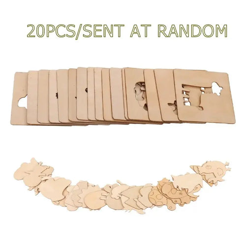20pcs Montessori Kids Drawing Toys Wooden DIY Painting Stencils