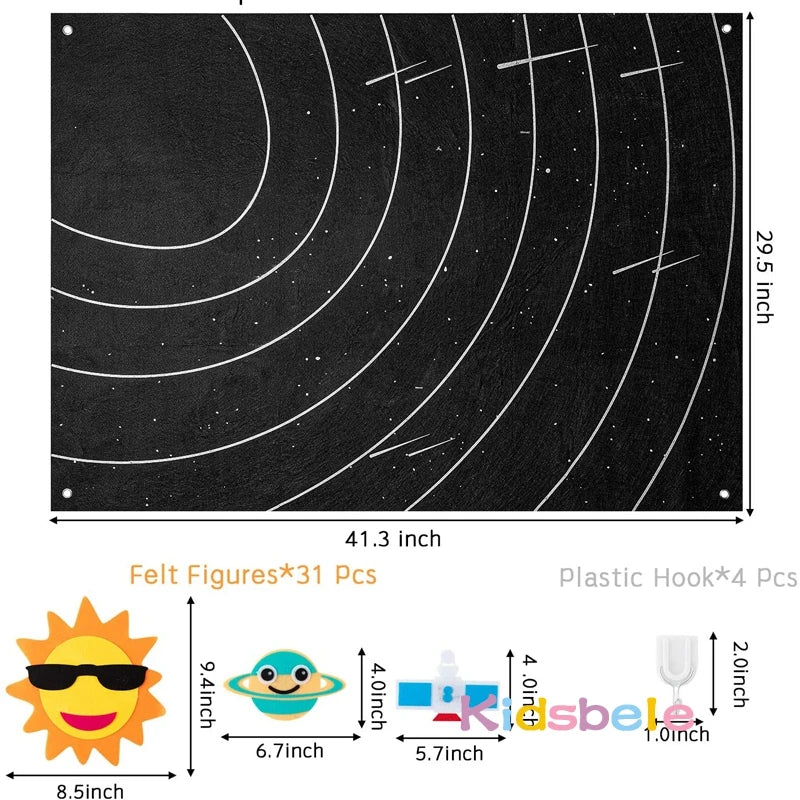 - Giant 3.5-feet felt board with 30 space pieces