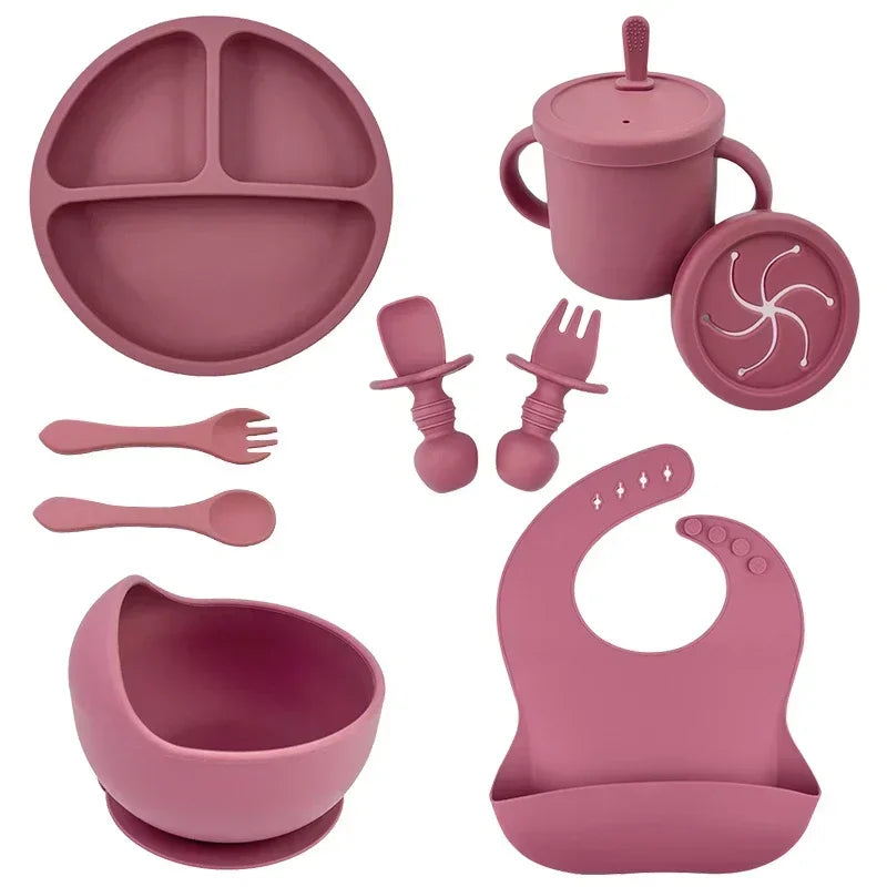 Silicone Baby Feeding Set Suction Bowl Baby Dinning Plate Straw Cup